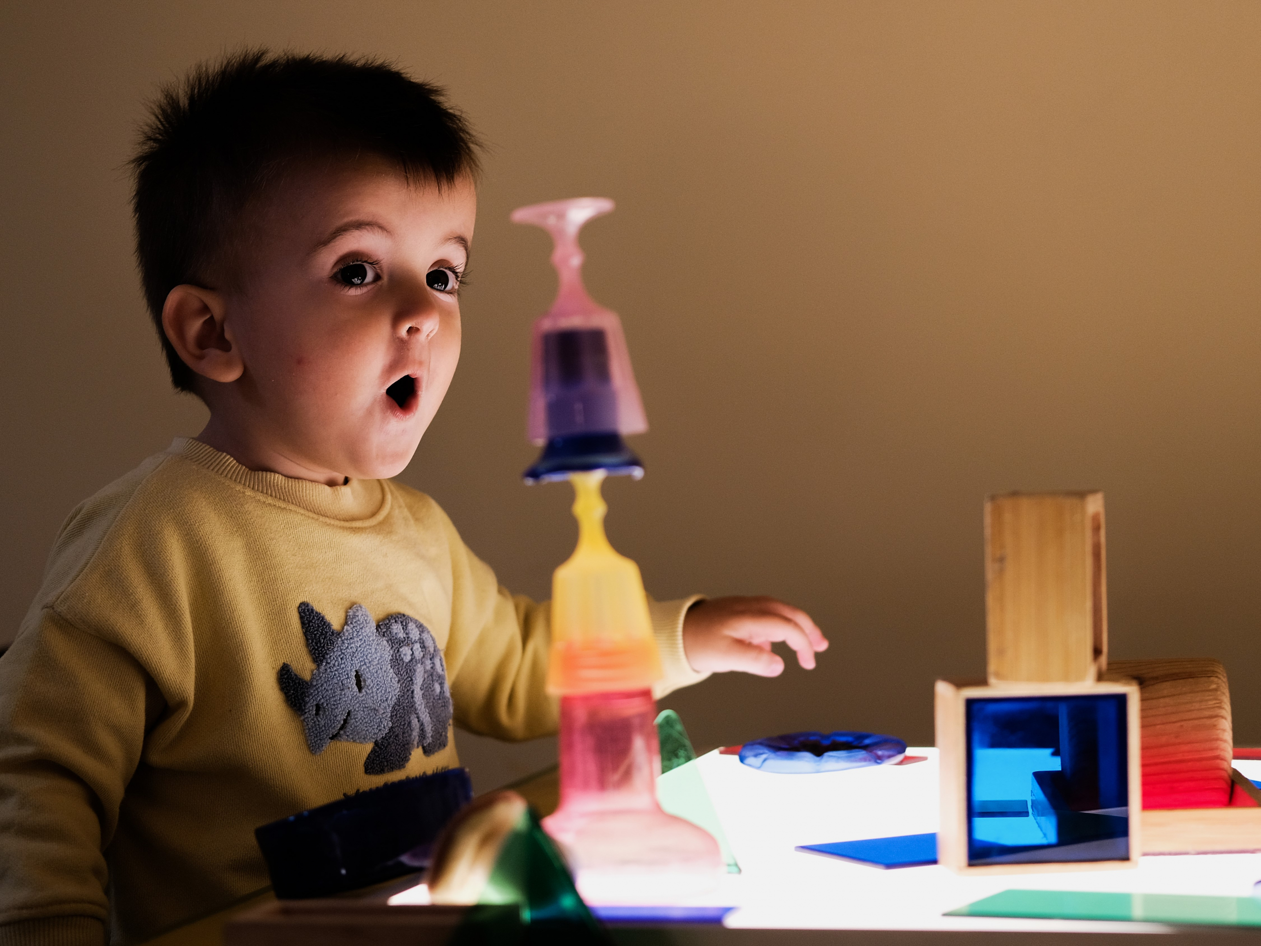Mesa de luz: Para jugar con objetos traslúcidos, colores y formas.