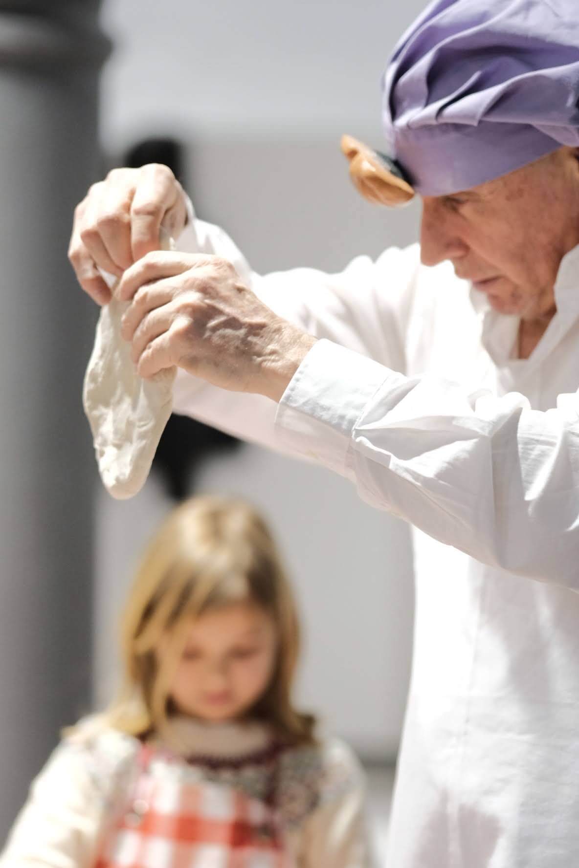 En el espacio hay mesas para trabajar, instrumentos para amasar y modelar y un singular horno para poder hornear nuestros productos.